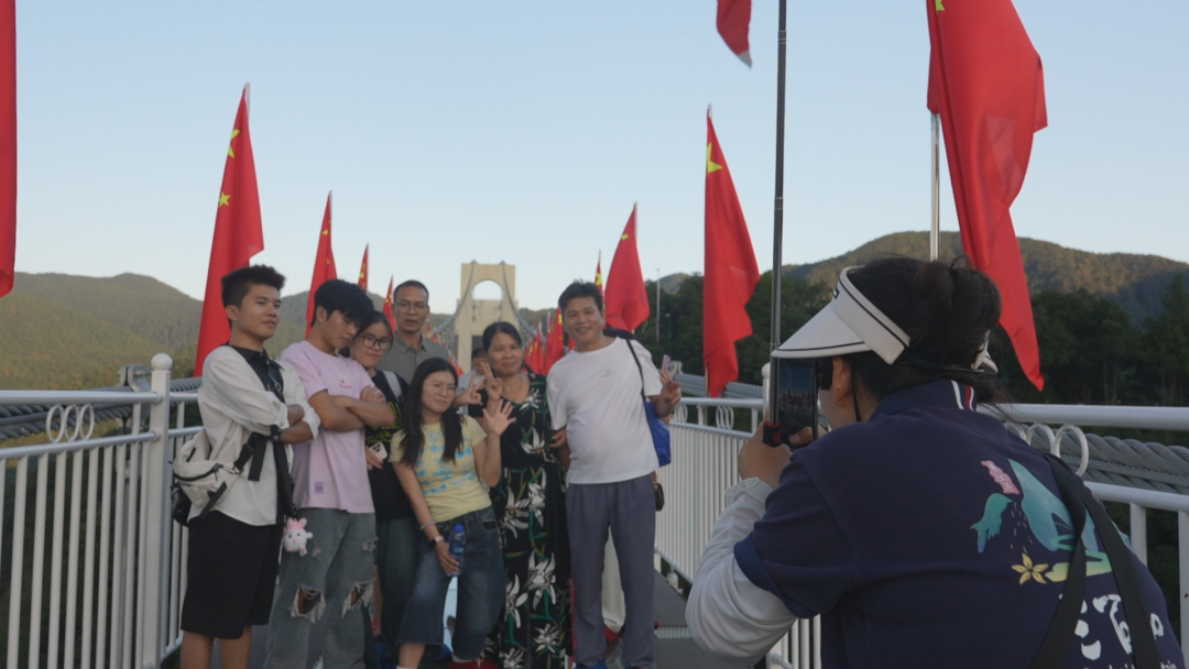 国庆期间,景区里随处可见身着统一服装的工作人员与志愿者:他们或是在入口处耐心引导游客扫码入园,或是在步道旁为询问路线的游客细致讲解,或是主动帮携带行李的游客搭把手……