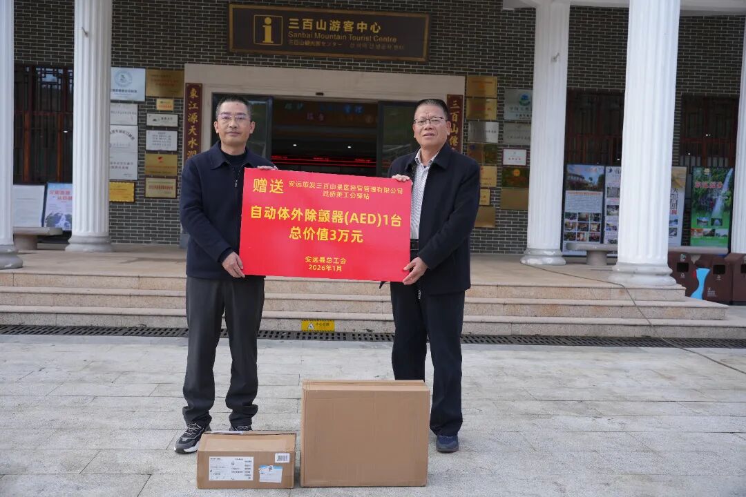 1월 12일, 안위안현 인민대표대회 상무위원회 부주임이자 현 총공회 당조 서기 겸 주석인 류왕칭(刘旺清)이 단장으로 삼백산 관광지에 방문해 3만 위안의 자동 외재 심장충격기(AED)를 기부했다. 이는 많은 관광객들의 생명 안전을 보호하는 중요한 수단이 될 뿐만 아니라, 현 총공회가 상급 기관과 적극적으로 협력하여 비상 물자를 확보하고 관광 공공 서비스의 업그레이드를 지원하는 따뜻한 실천의 사례이기도 하다.